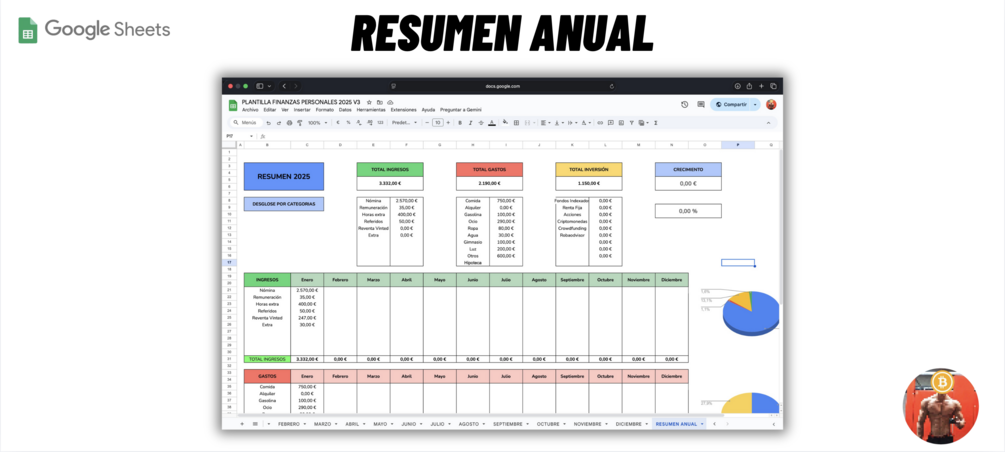 - Resumen anual: Estadísticas anuales de ingresos, gastos e inversiones 💶